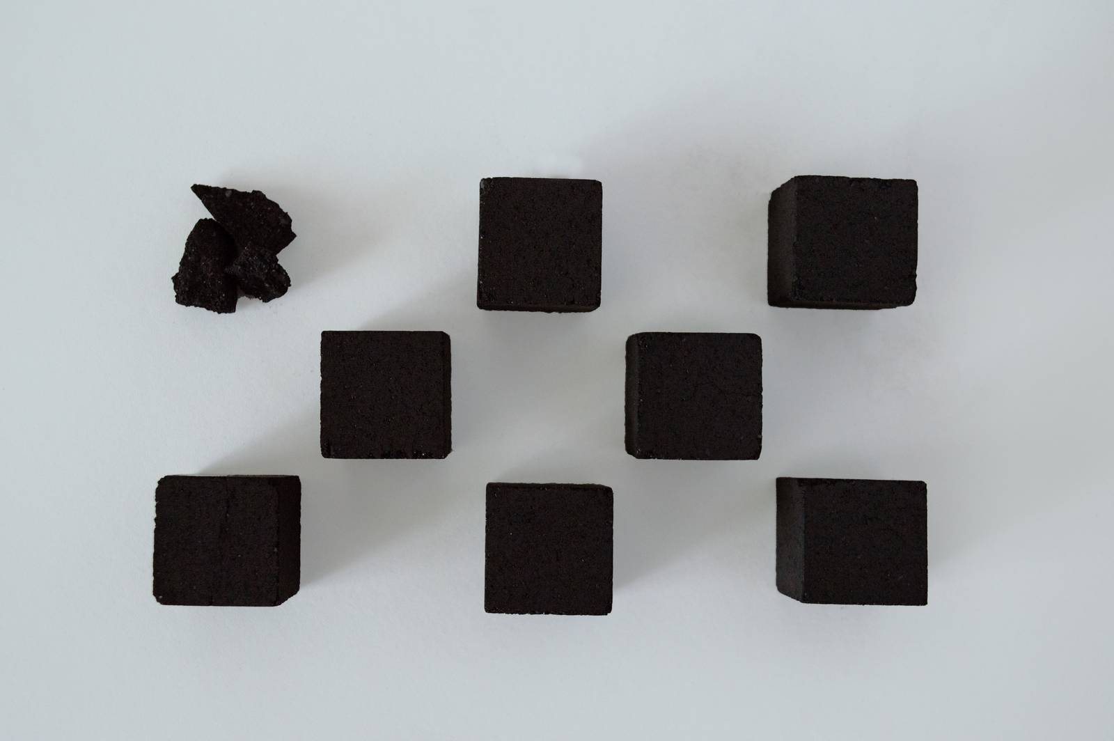 Випускається в розмірі 25*25*25 мм в зручній упаковці по 250 грам (18 шт) в кожній. В кожному ящику 24 упаковки вугілля, загальною вагою 6 кг.